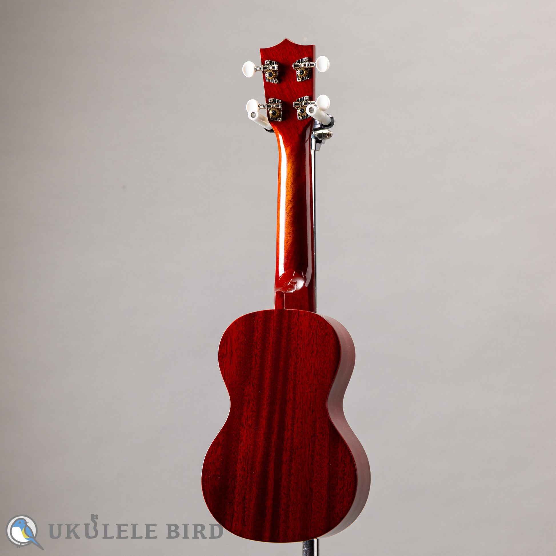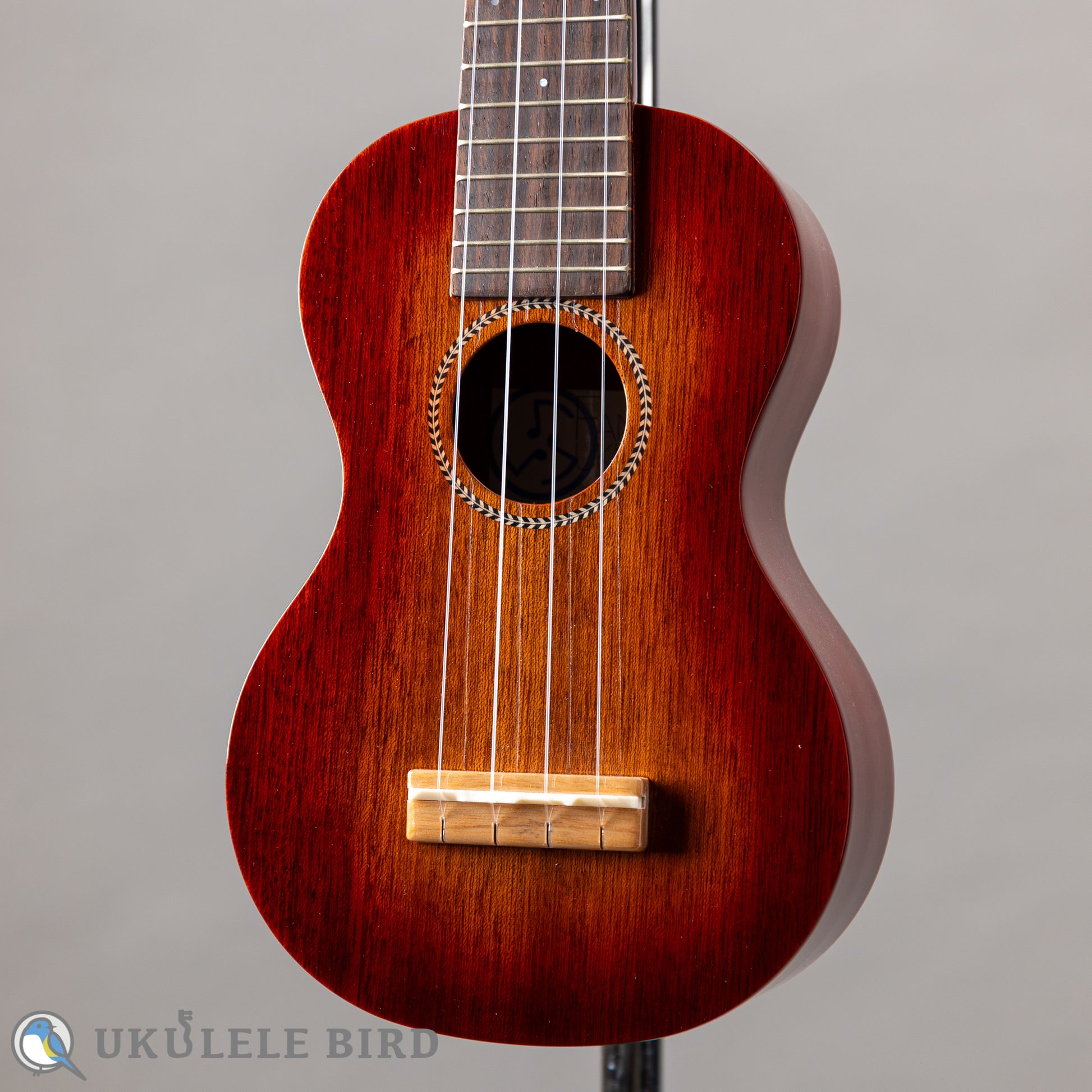This soprano ukulele has an attractive mahogany plywood body with a red sunburst finish.