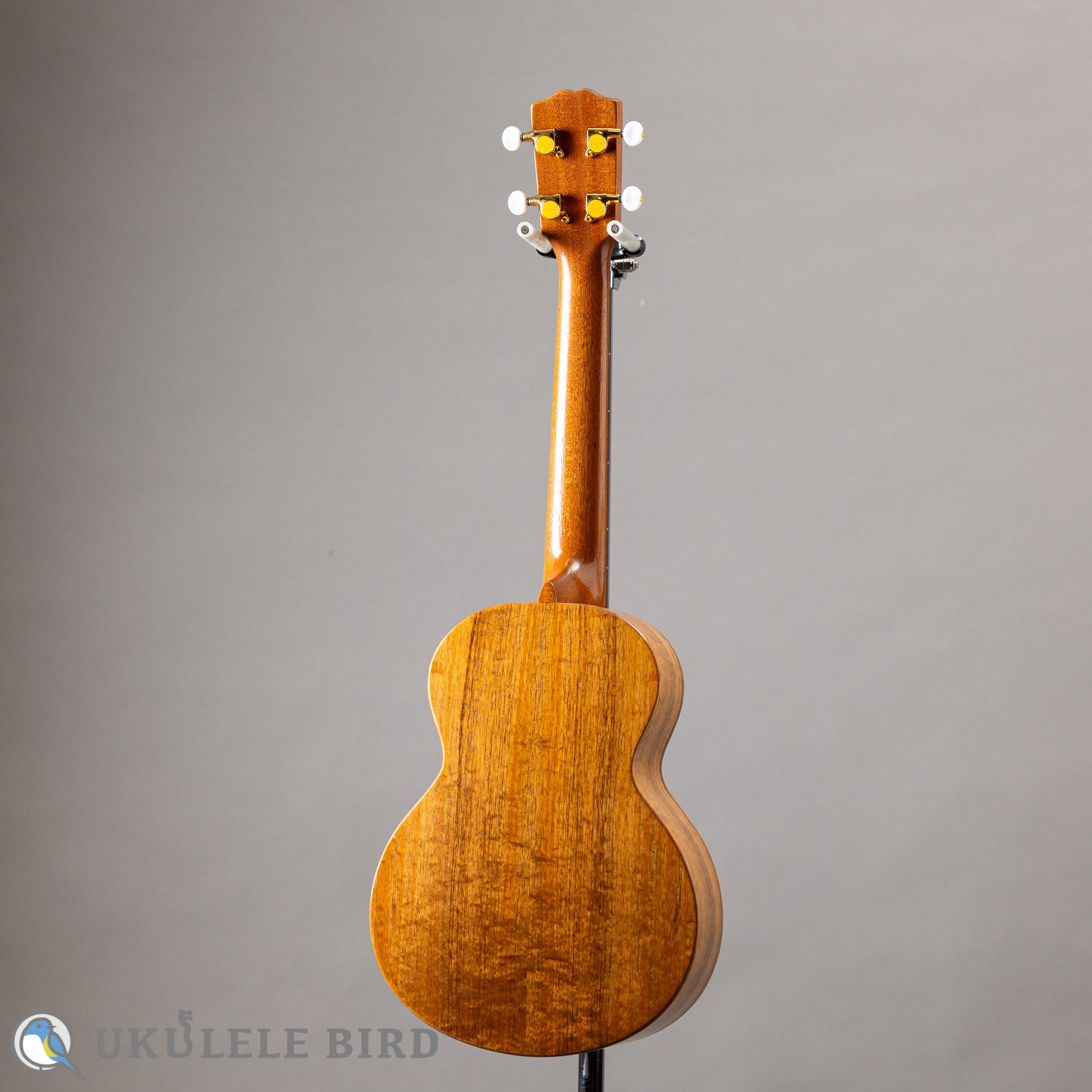 The body is made of beautiful curly-grained Hawaiian Koa, which produces a bright, crisp tone with a rich, expansive sound. It's perfect for a wide range of playing styles, from solos to accompaniment.