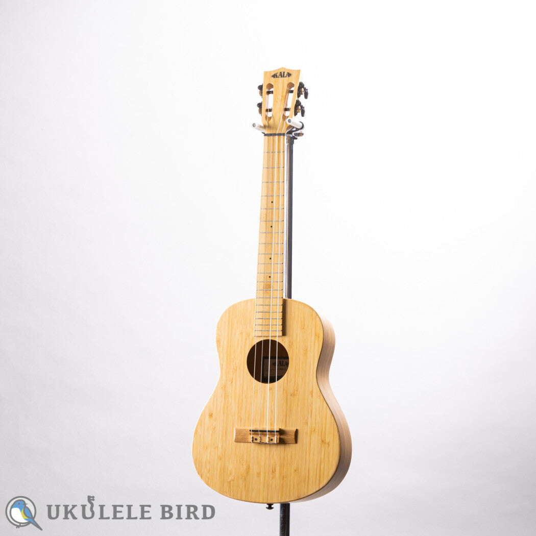 This is a baritone model of KALA's bamboo ukulele that has a natural and rustic look and a bright and clear tone.