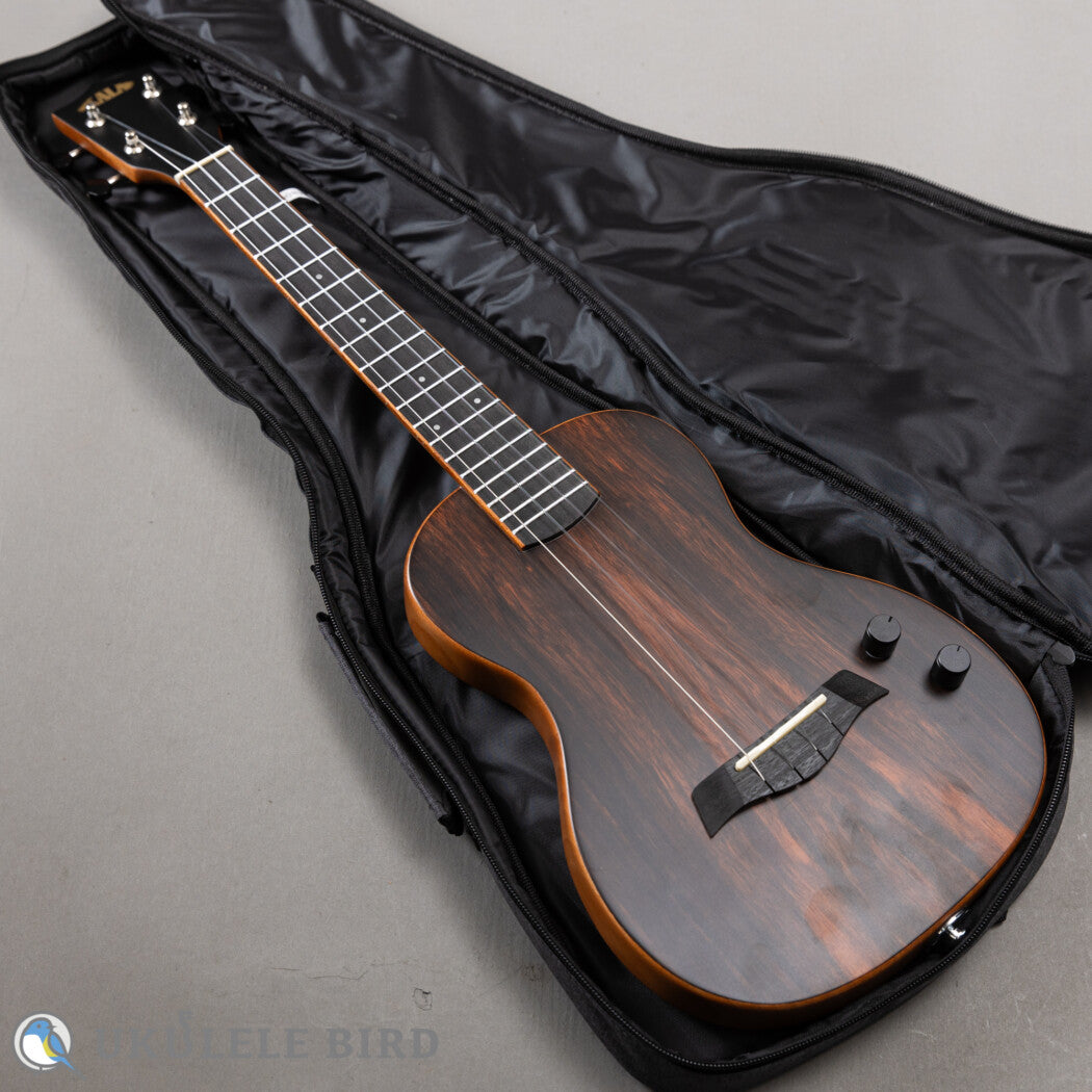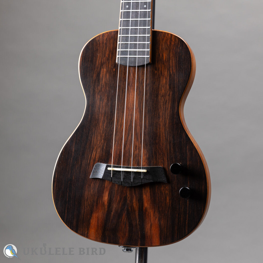 A new classic, a tenor-sized electric ukulele with a striped ebony top!