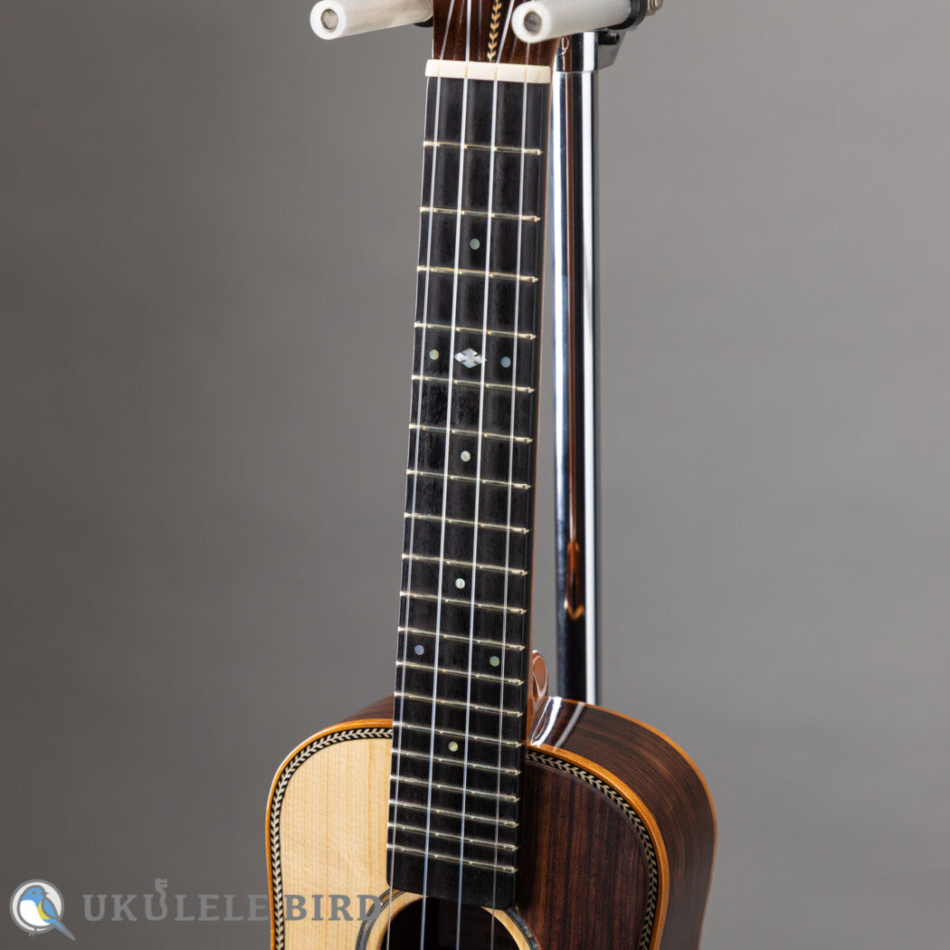 The ukulele is made by Tatsuro Furubayashi, who has been making classical guitars and ukuleles at Chai Guitar Craft for 12 years and has a career spanning nearly 30 years. Using classical guitar manufacturing techniques, the ukulele is handmade by a single skilled craftsman without the use of large machinery. Most of the parts, such as liners and bridges, are handmade rather than outsourced, and the rope-patterned purfling is also handmade.