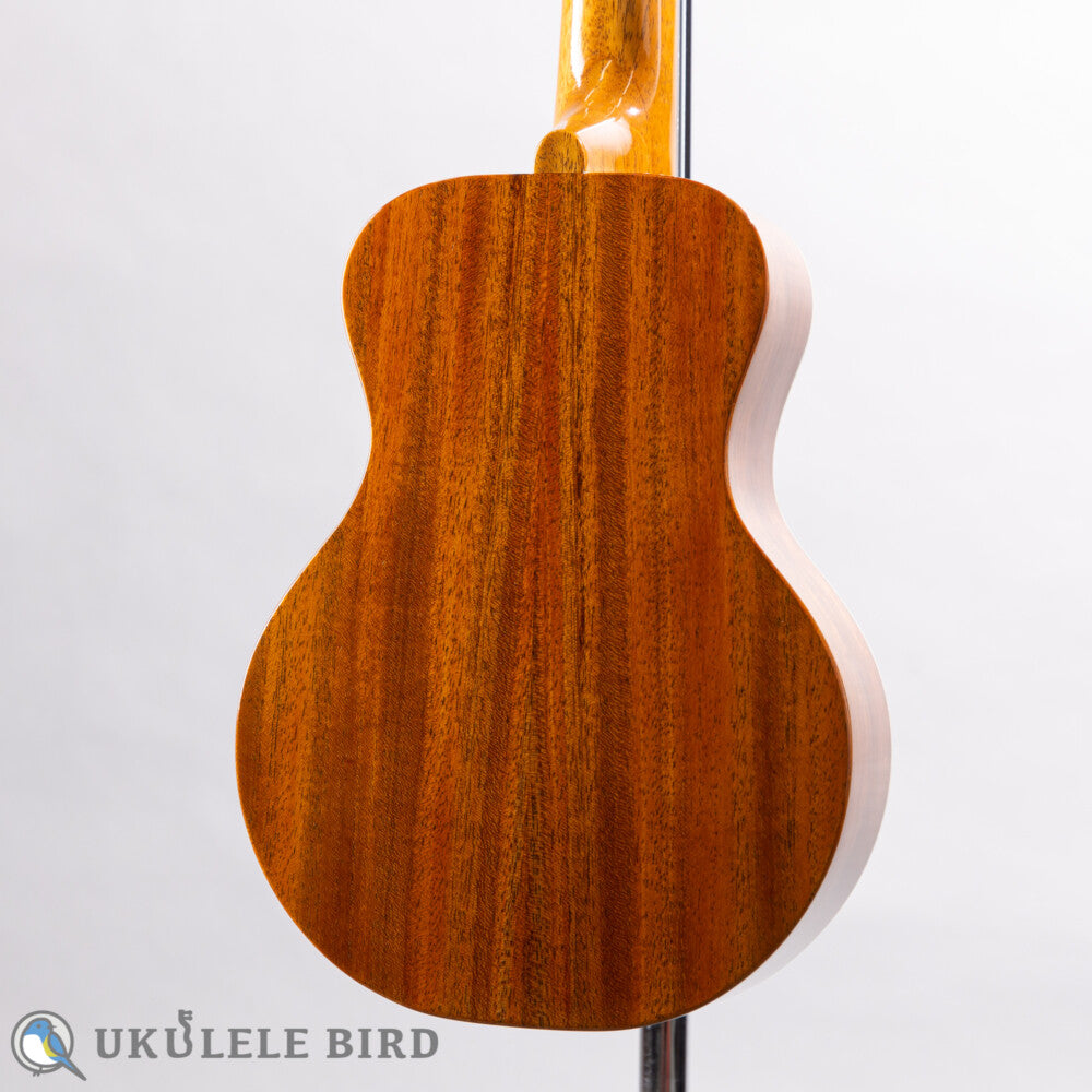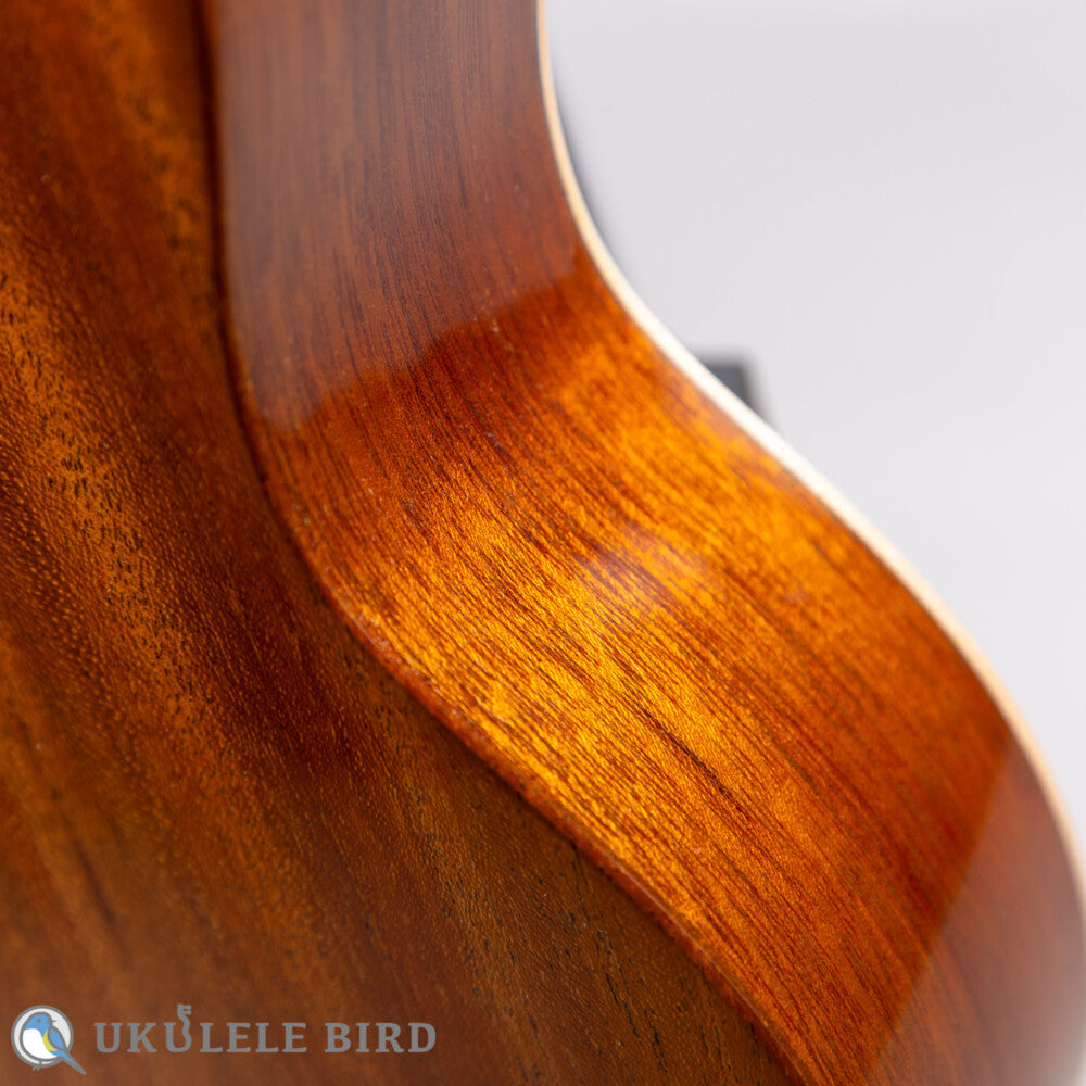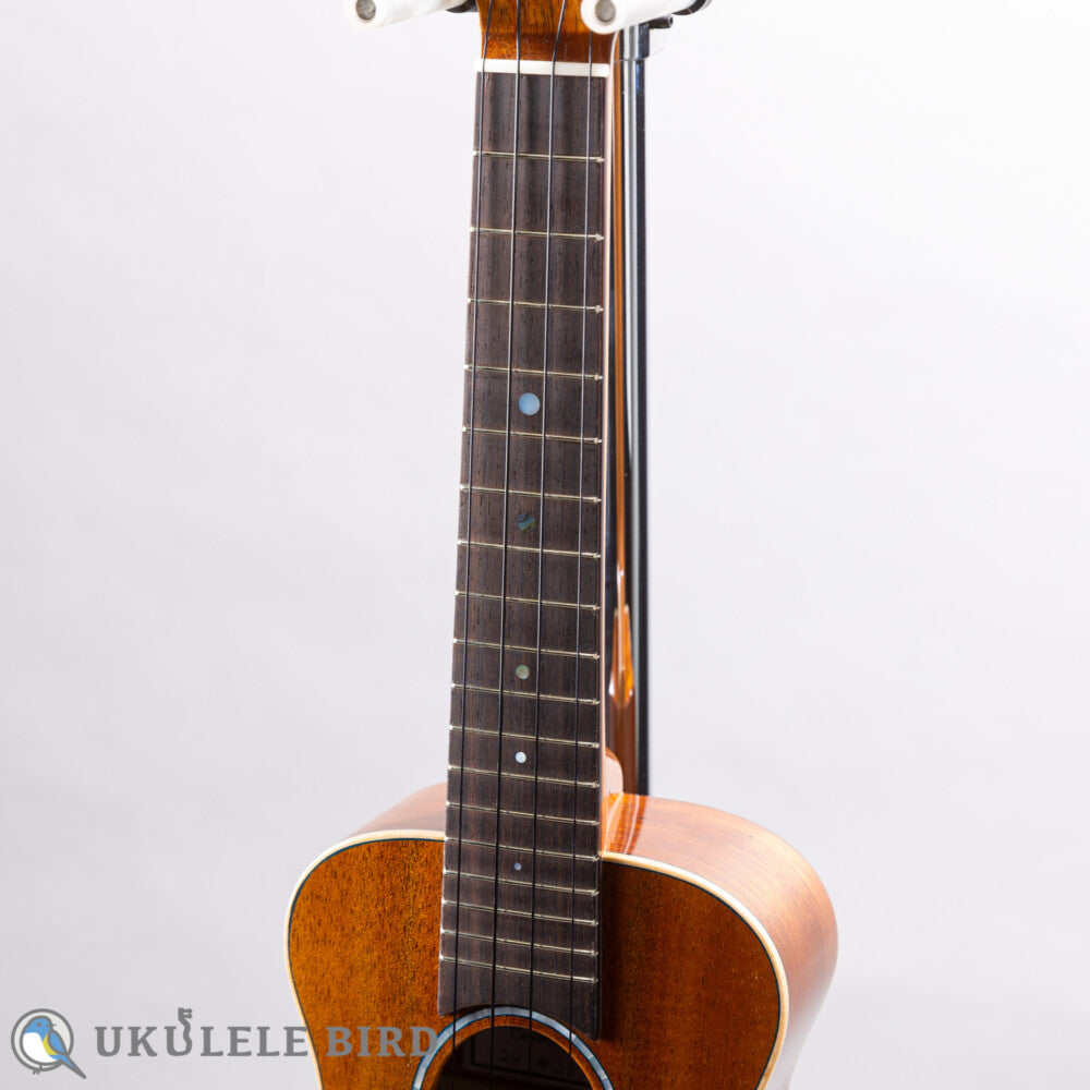 This concert ukulele uses Hawaiian Koa for the top and Honduran Mahogany for the body. It has a clear, crisp sustain, and is a bright, expressive instrument!