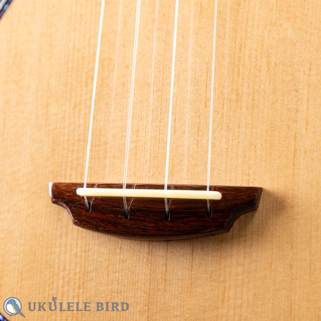 The top is made of Sitka spruce and features X-bracing, which is rare for a ukulele.