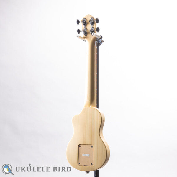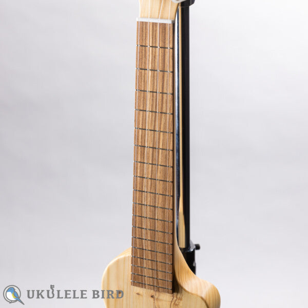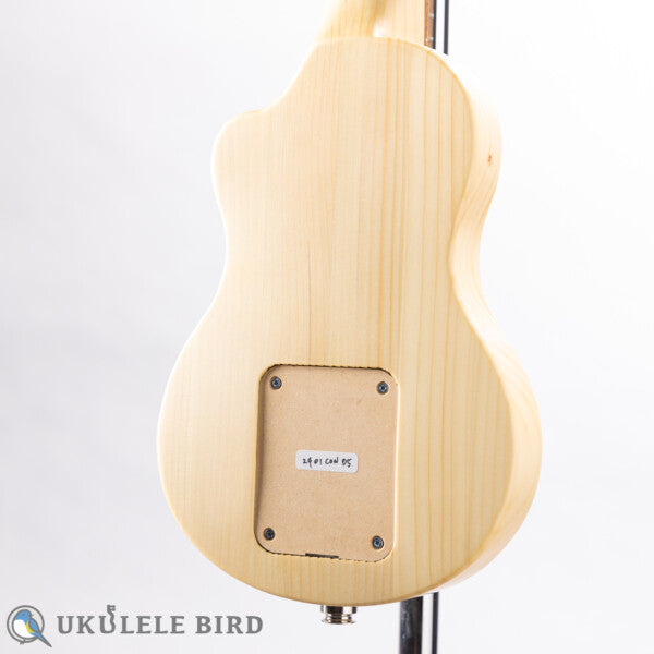 A silent electric ukulele with a neck-through structure carved from Hokkaido Todomatsu! The long-awaited ukulele shape!