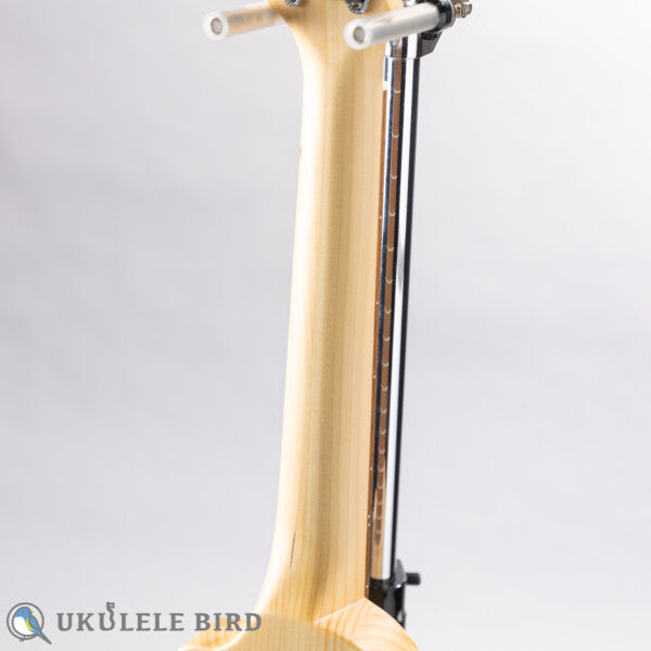 Our model, eleComCon, is a concert-sized, long-neck ukulele with a through-neck structure carved from Hokkaido Japanese Sakhalin fir.