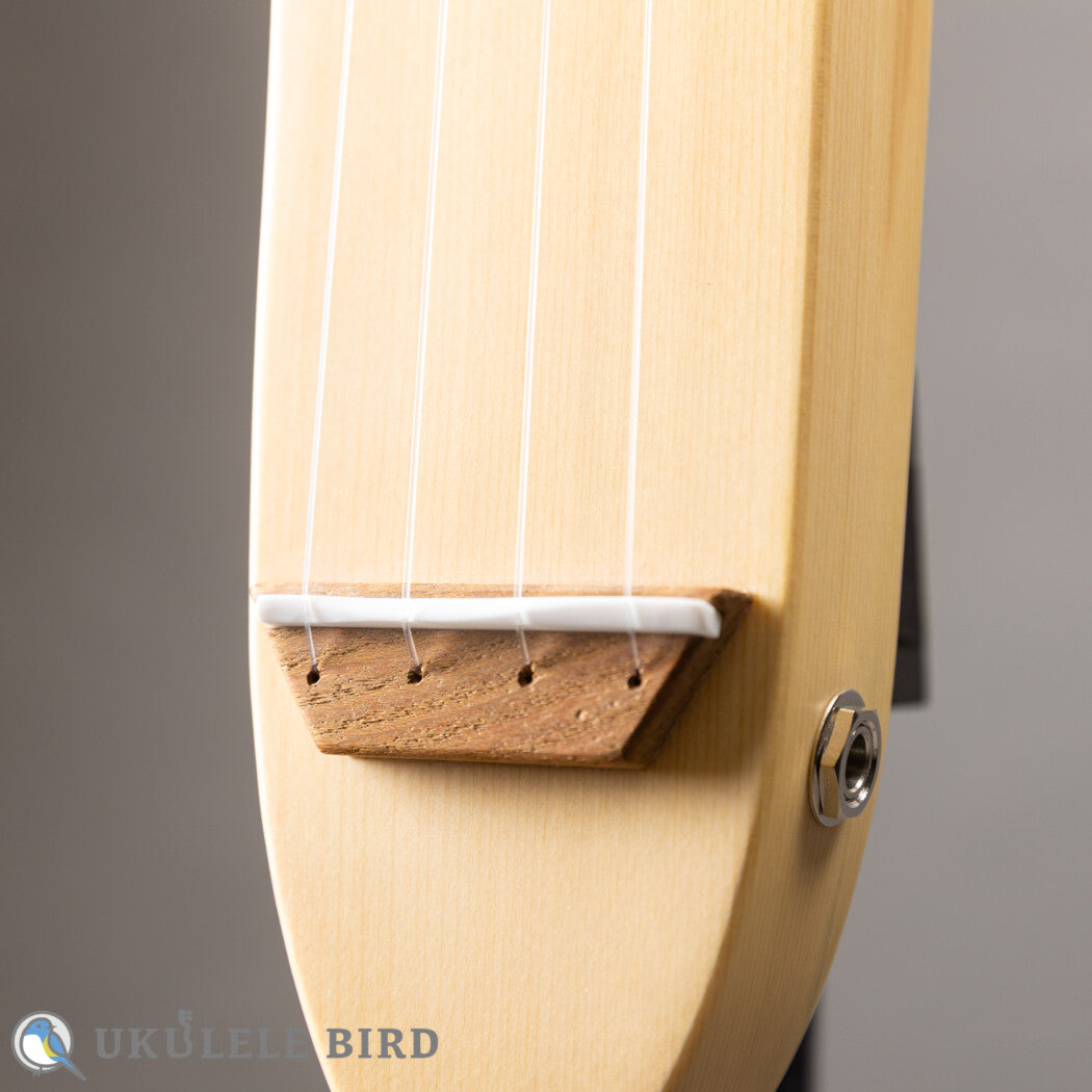 [Back in stock] A silent electric ukulele with a neck-through structure carved from Hokkaido spruce! The slender body makes it extremely portable!