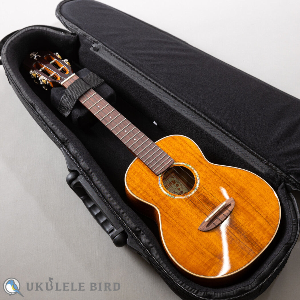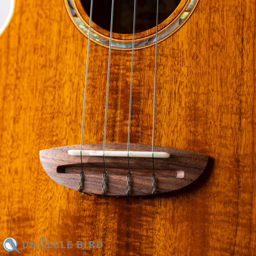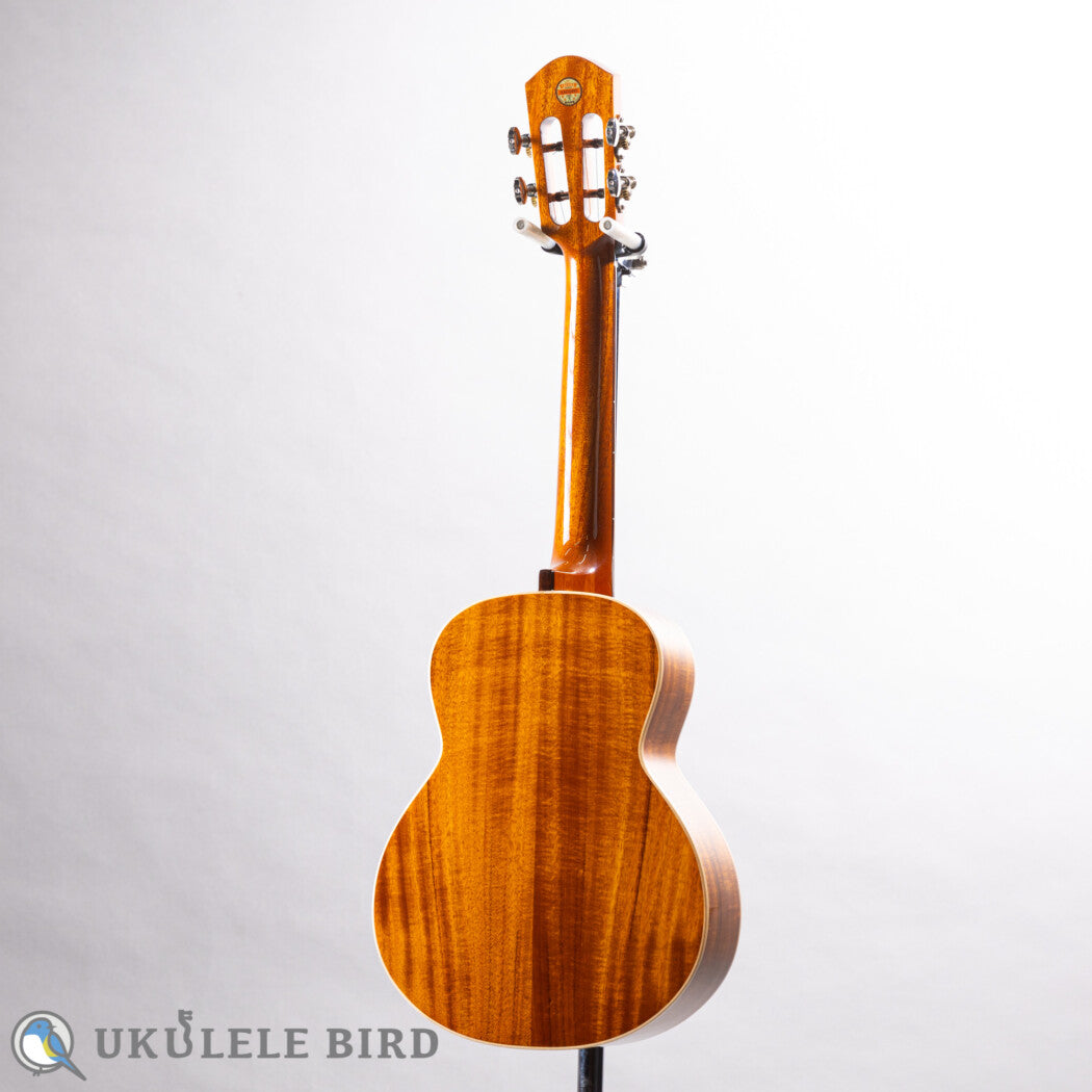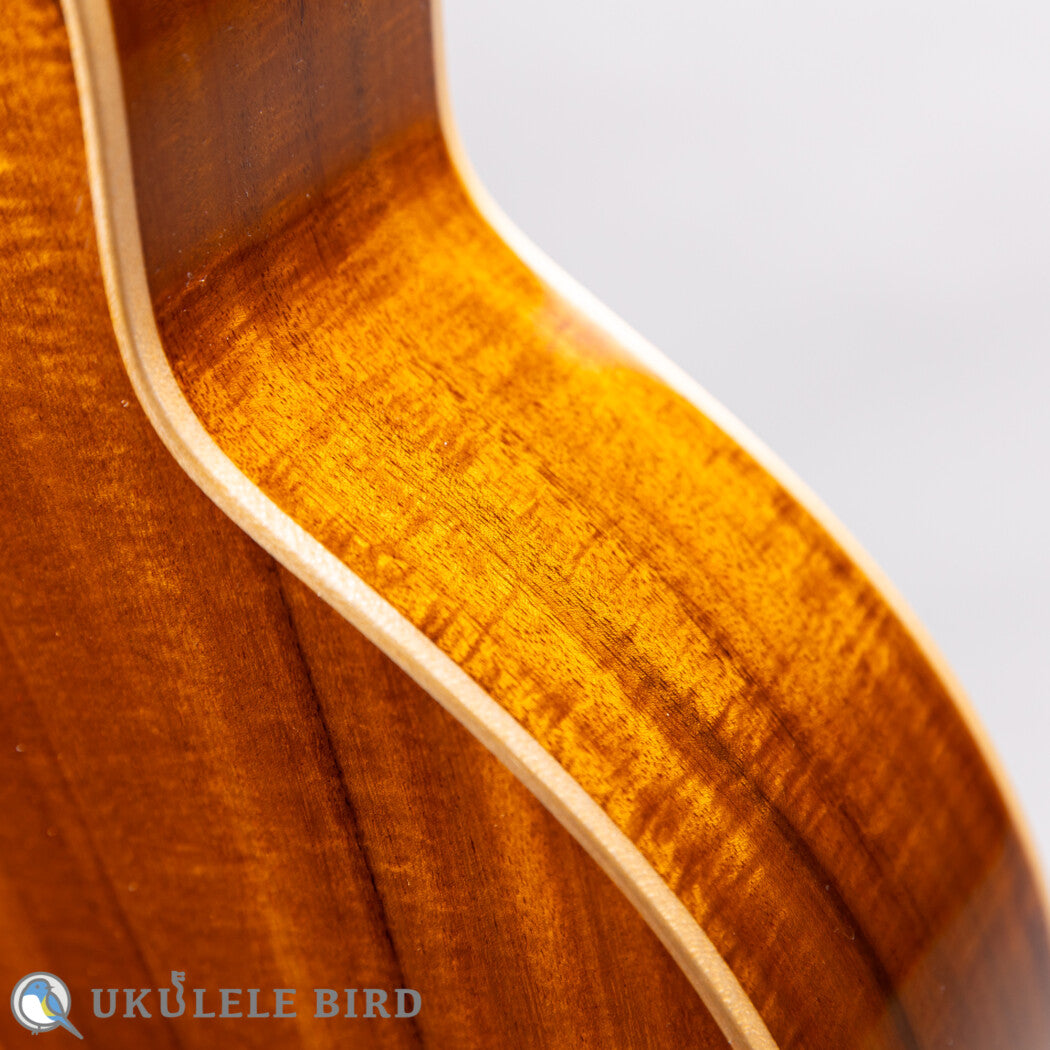 見た目、サウンド共にハワイアンコアに近い特性を持つ台湾アカシア材を用いて製作された日本限定モデル。スケール430mmのテナーサイズ。14Fジョイント・20F仕様。