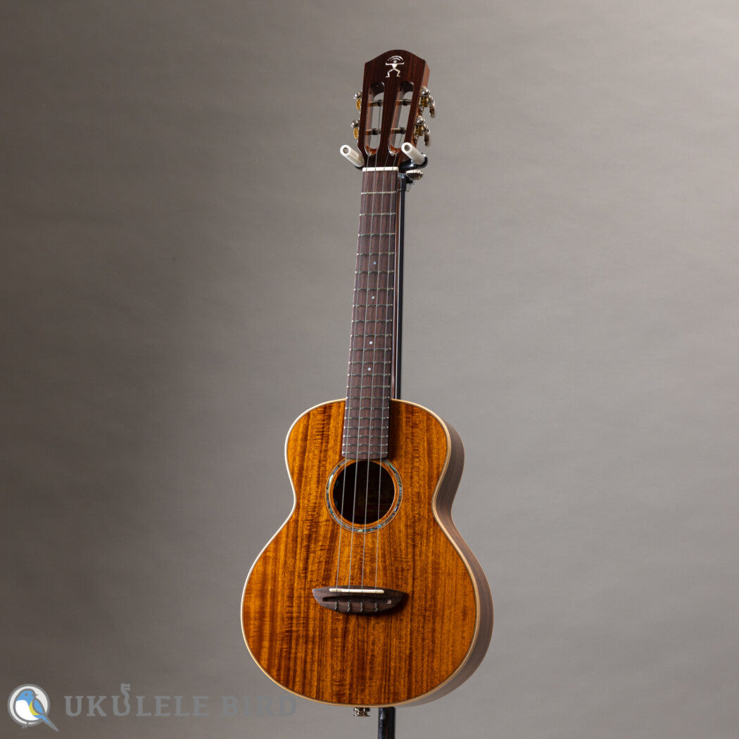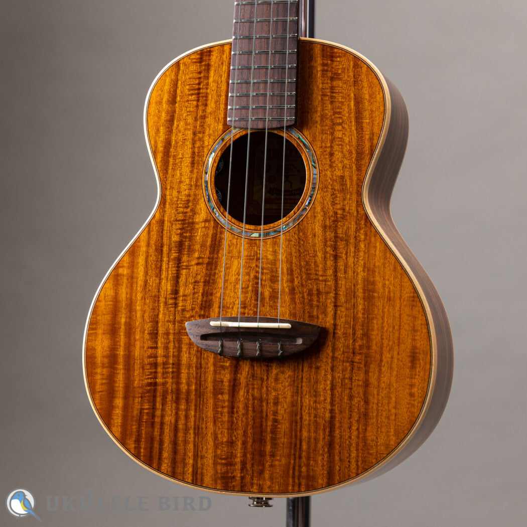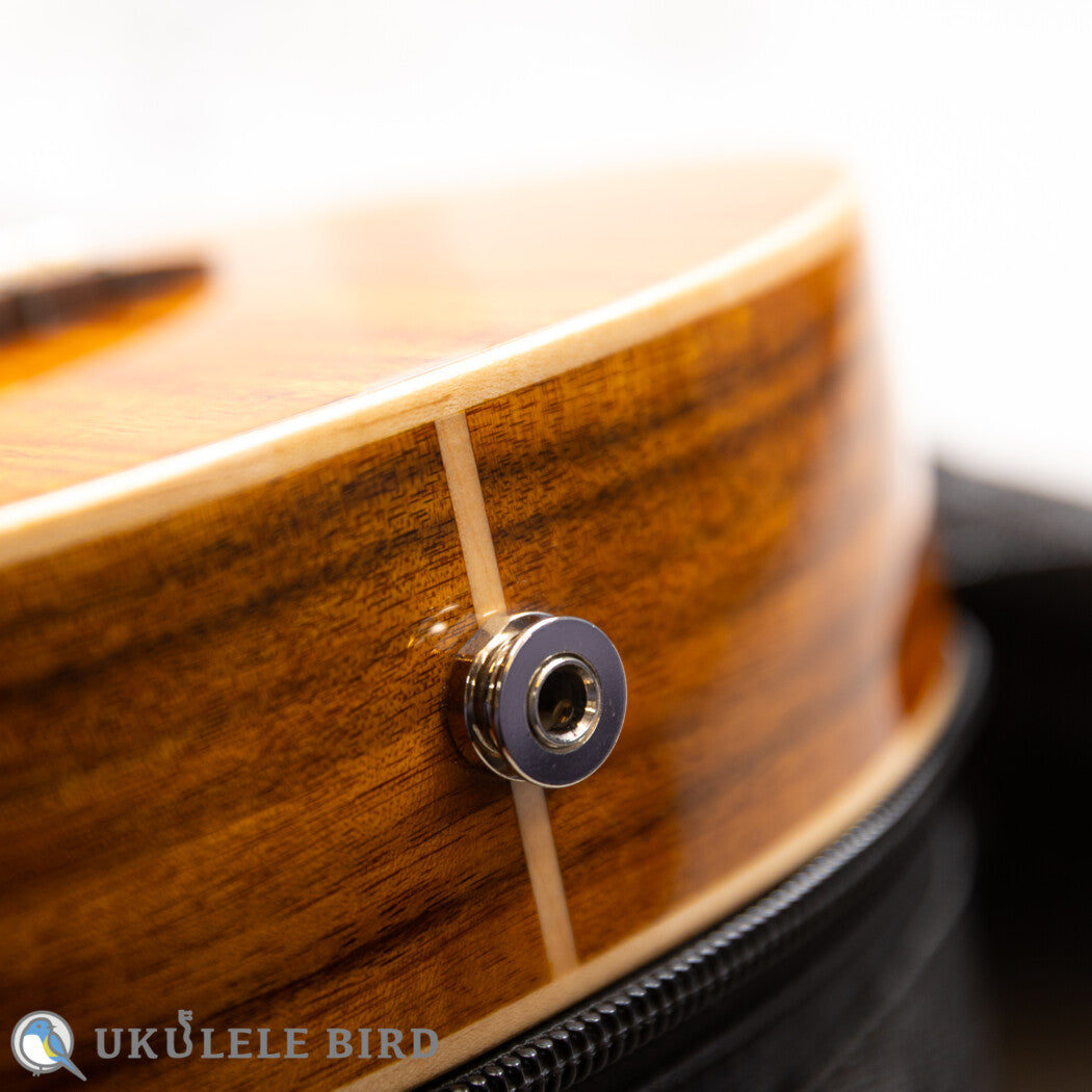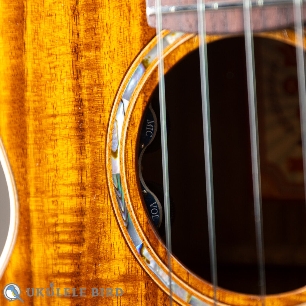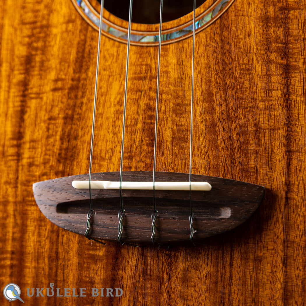 見た目、サウンド共にハワイアンコアに近い特性を持つ台湾アカシア材を用いて製作された日本限定モデル。スケール430mmのテナーサイズ。14Fジョイント・20F仕様。 綺麗な木目と赤褐色の美しい色が美しいです。アヴァロン貝を用いたロゼッタ、ボディ外周にはメイプルでバインディング加工、スロテッドヘッド、塗装は艶のあるグロス仕上げなど、高級感溢れる仕様が満載です。