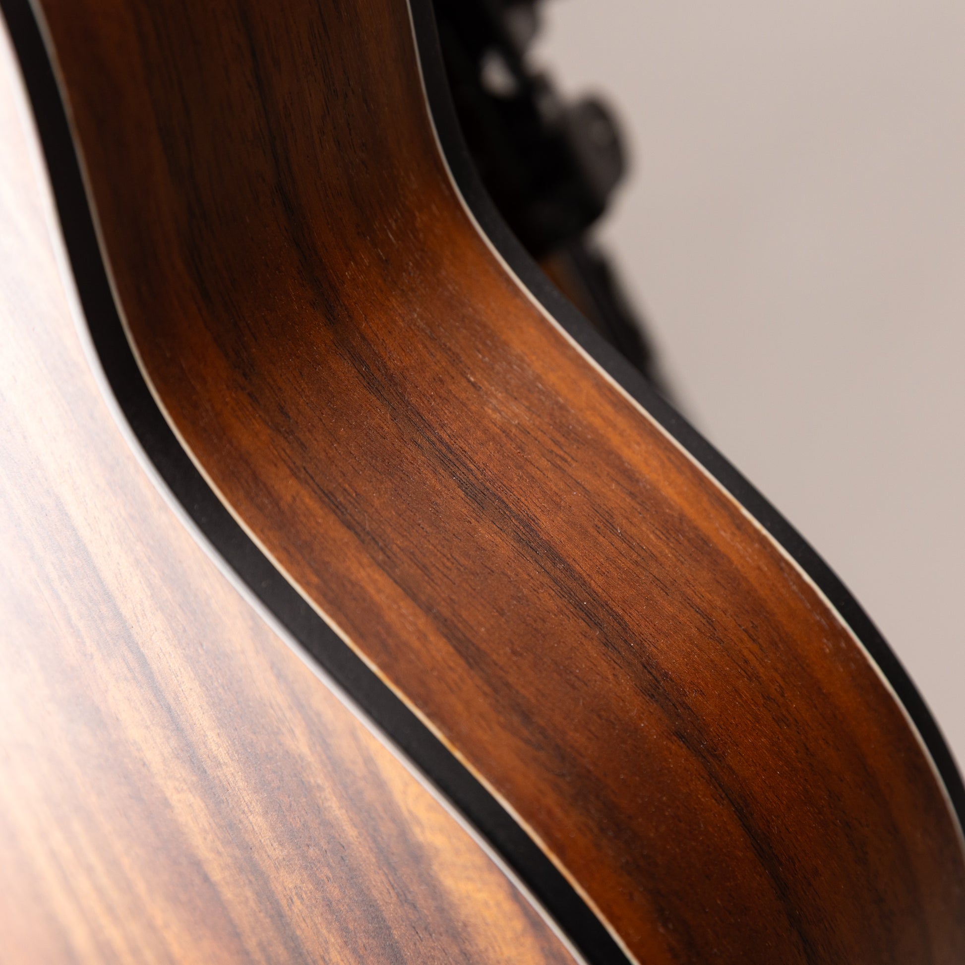 ボディ材にはハワイアンコア合板を使用し、歯切れの良い軽やかな音色が特徴。