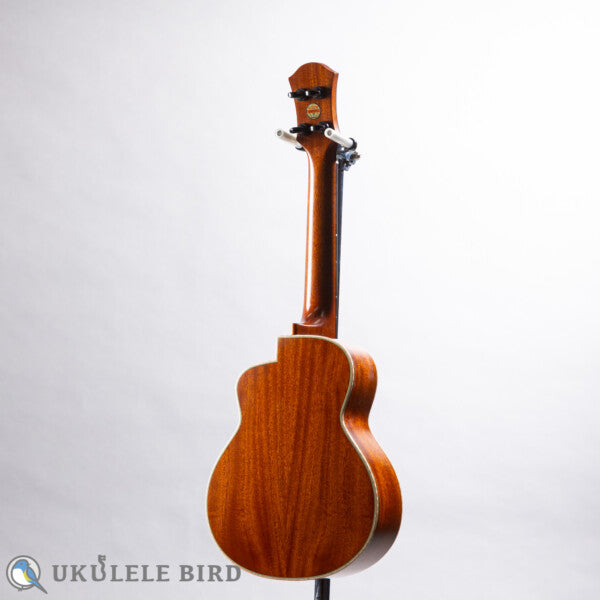グリーンバードシリーズと名付けられ、ロゼッタやバインディング、ポジションマーク、ボディエンド等に、グリーンを基調とした装飾が施され、グリーンをテーマカラーとして仕上げられています。弦もClear Water弦に改良を加え緑色の見た目と独自のテンション感を実現しています。ハードケースも緑色でトータルでコーディネイトされているウクレレです。