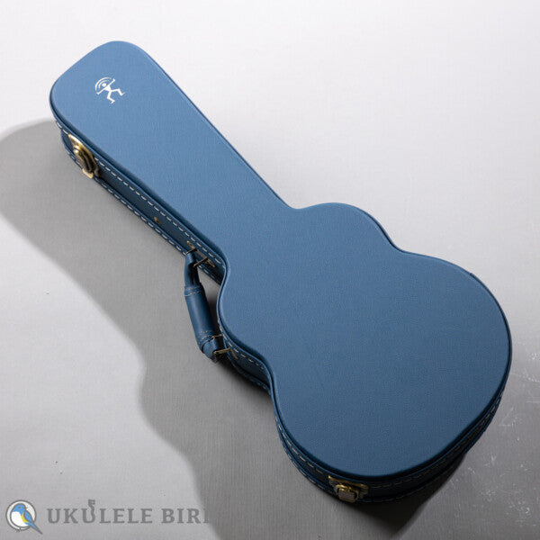 ロゼッタやバインディング、ポジションマーク、ボディエンド等に、ブルーを基調とした装飾が施され、ブルーをテーマカラーとして仕上げられています。青いポジションマークを目立たせるために、エボニー指板を磨き込んで艶のある仕様にしているなど非常に凝っています。弦もClear Water弦に改良を加え青い見た目と独自のテンション感を実現しており、青い標準のハードケースと相まってトータルコーディネイトされている感じです。