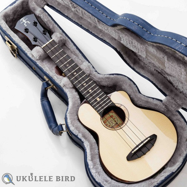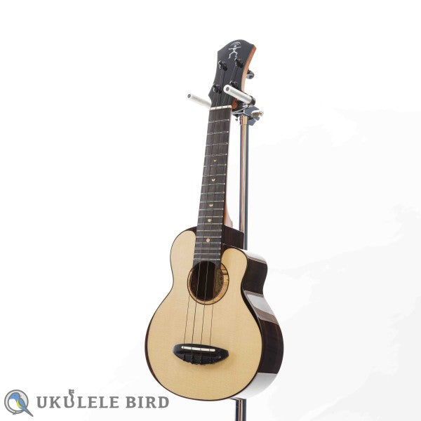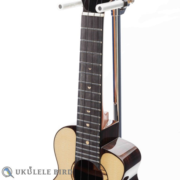 高品質でデザイン製に秀でた台湾のウクレレメーカー、アヌエヌエのハイグレードモデルのソプラノウクレレです。月の満ち欠けによる、科学的な概念より導き出された魅惑的なトーンを奏でる材料として近年、世界レベルで高級ギターに使用されているスイス・ムーン・スプルース材をトップ材として惜しげもなく使用しています。