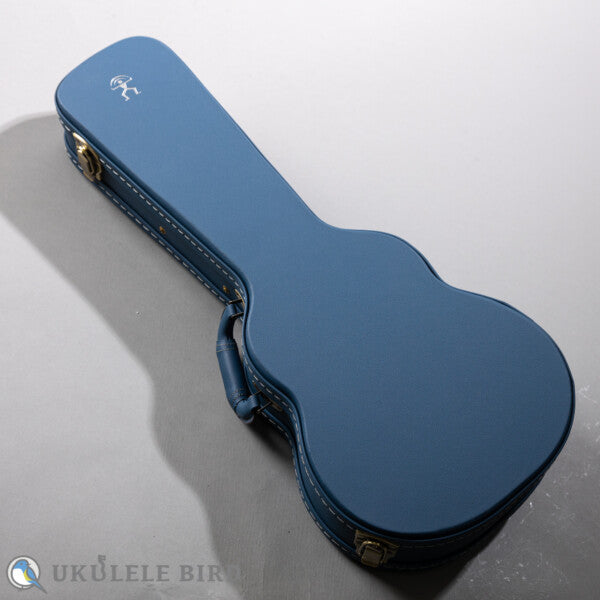 ロゼッタやバインディング、ポジションマーク、ボディエンド等に、ブルーを基調とした装飾が施され、ブルーをテーマカラーとして仕上げられています。青いポジションマークを目立たせるために、エボニー指板を磨き込んで艶のある仕様にしているなど非常に凝っています。弦もClear Water弦に改良を加え青い見た目と独自のテンション感を実現しており、青い標準のハードケースと相まってトータルコーディネイトされている感じです。