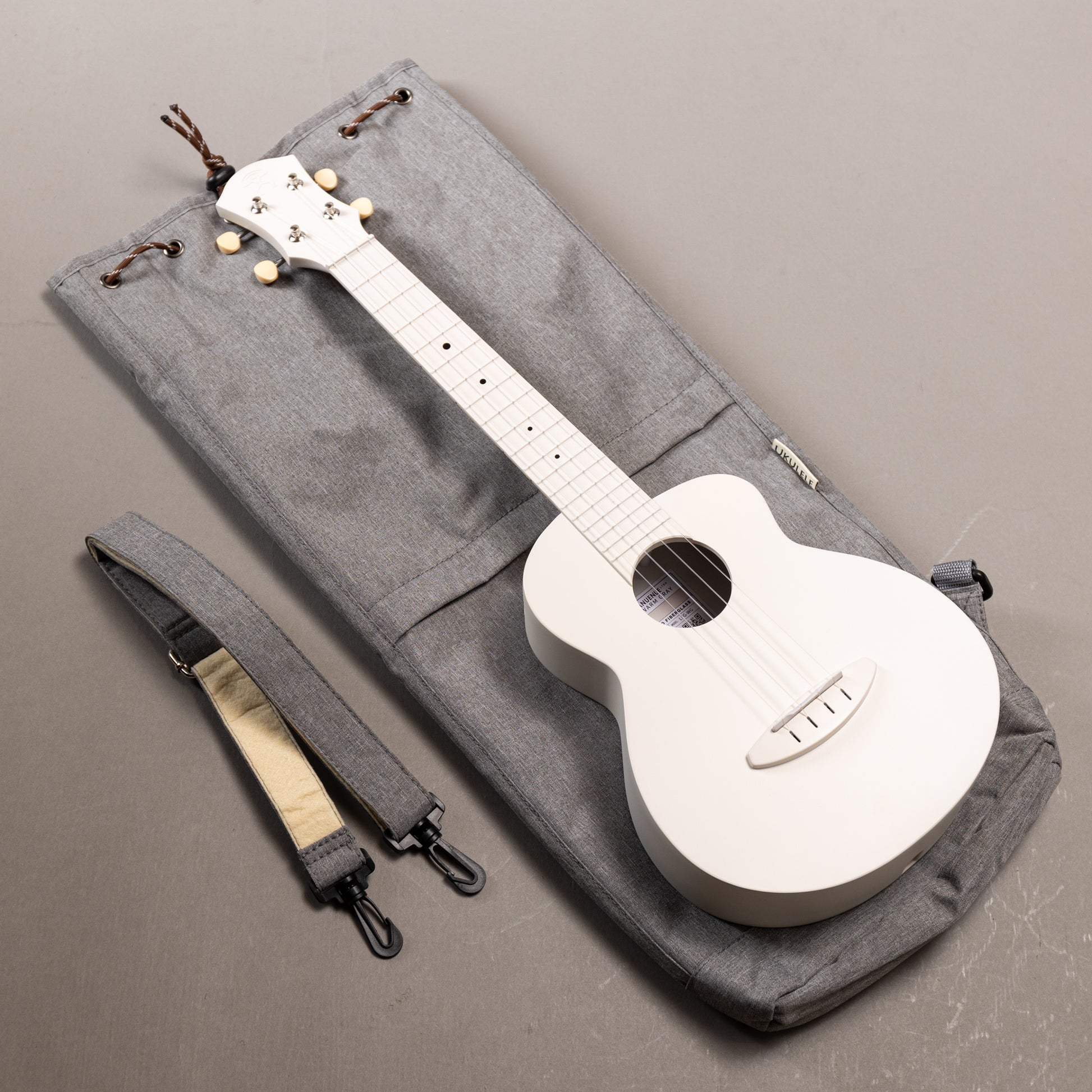 付属の専用ケースは、巾着型で気軽にもっていただけます。ケースのストラップはウクレレ本体に付け替えても利用可能な便利仕様。キャンプやビーチなどのレジャーに最適で、気軽にアウトドアへ持ち出して楽しめます。