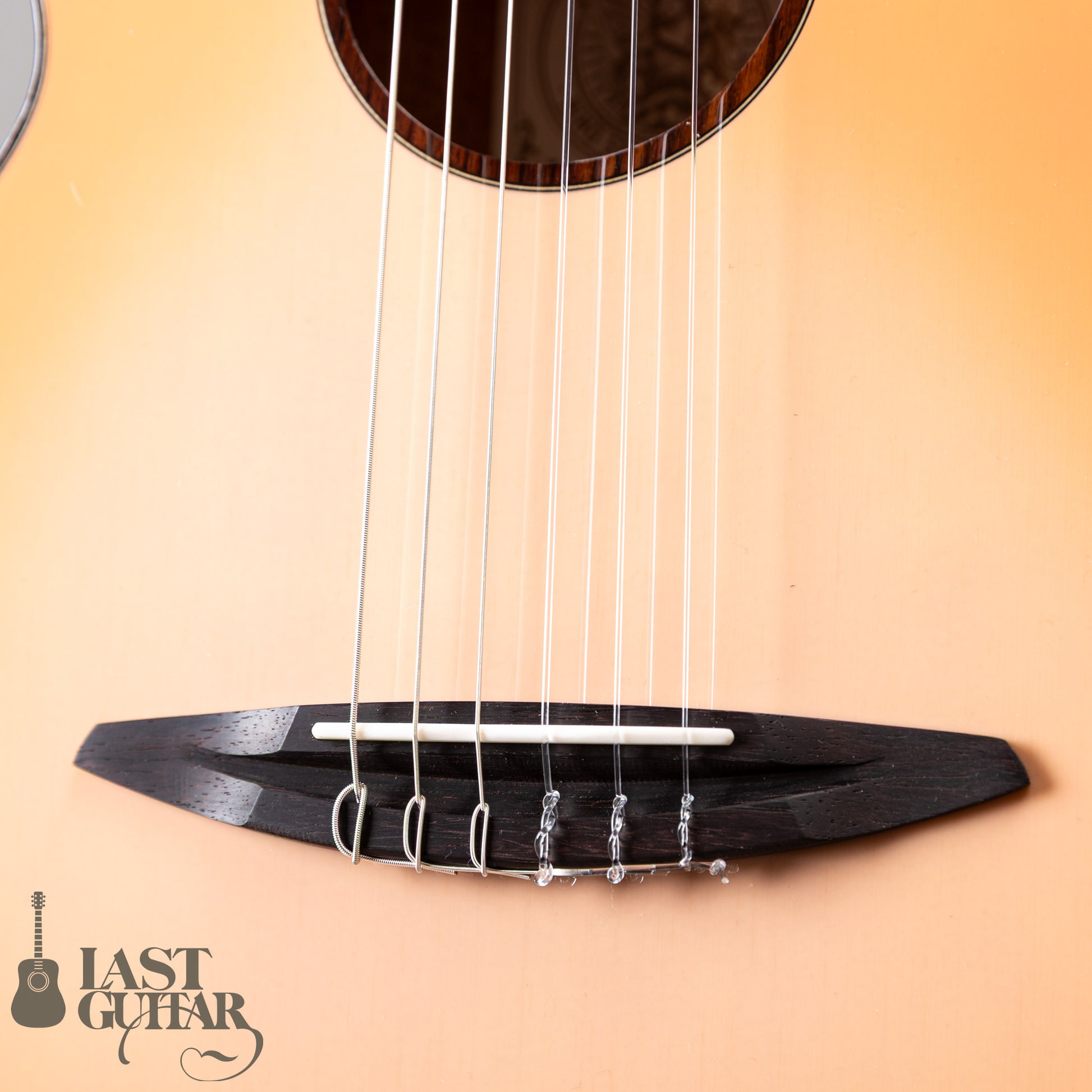 本モデル Spring Pink はトップにイングルマンスプルース単板を採用し、スプリングピンクバーストフィニッシュをまとったモデルです。花びらのようなピンクグラデーションのトップに、ローズウッドのバインディングと千鳥柄ペグがアクセントとなり、柔らかな春を感じさせるルックスです。