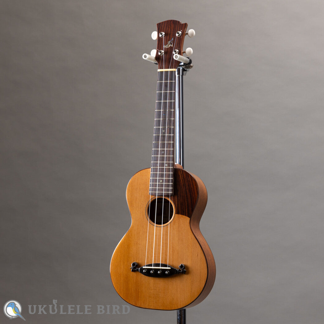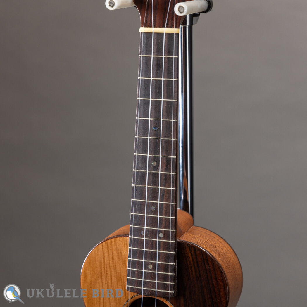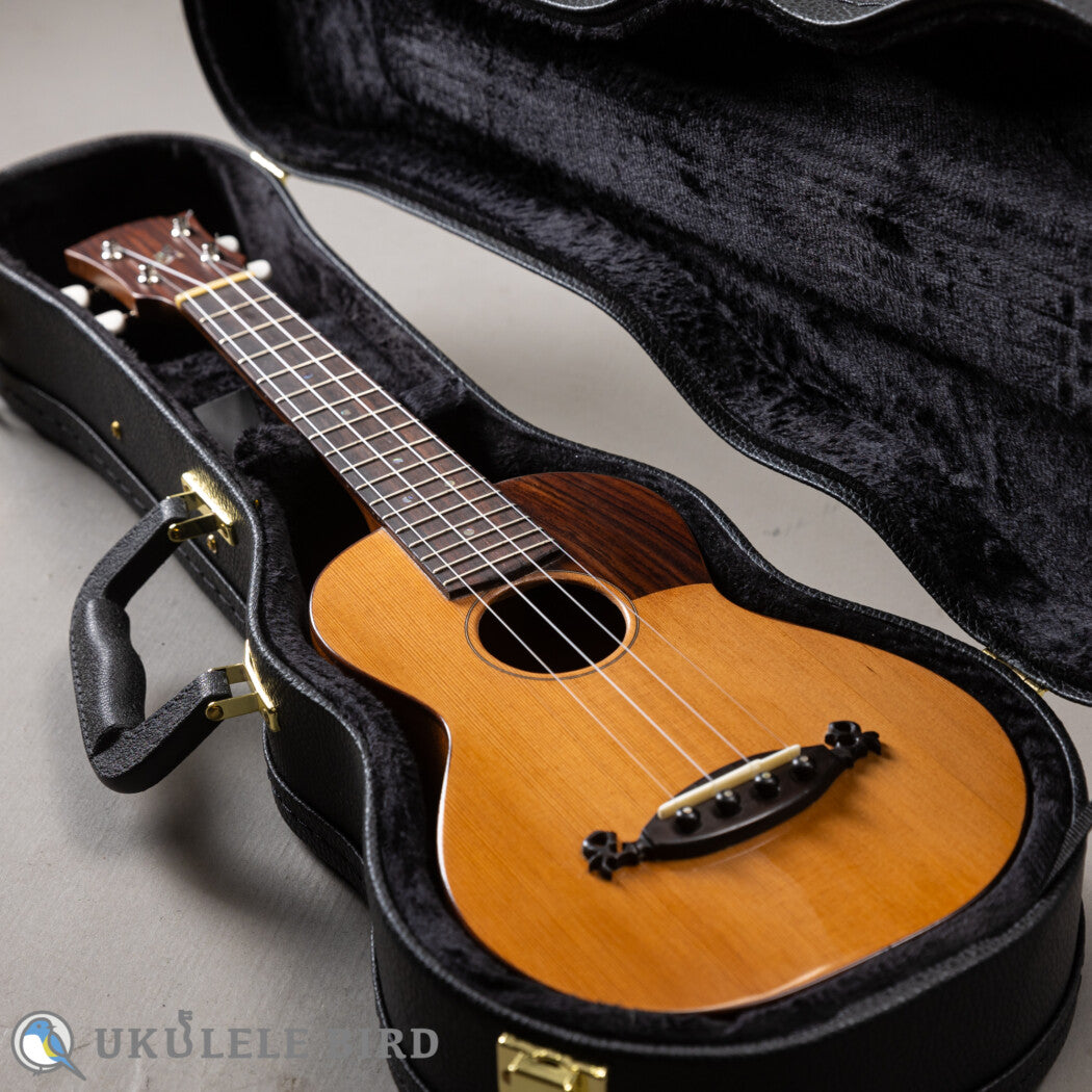 高級ギターで使用されるグレードのレッドシダーをトップに使ったアリミツギタークラフトのコンサートウクレレ