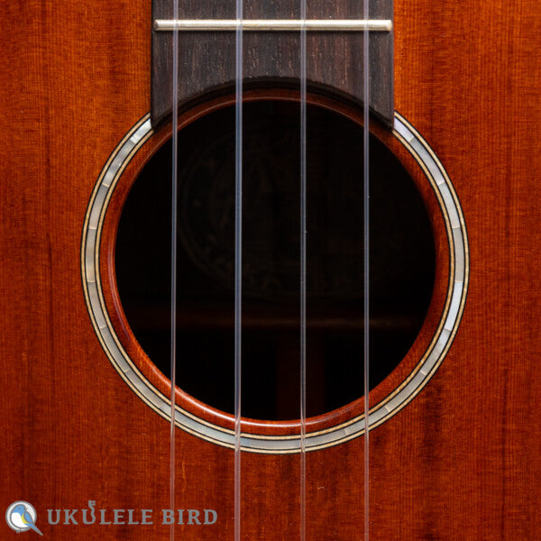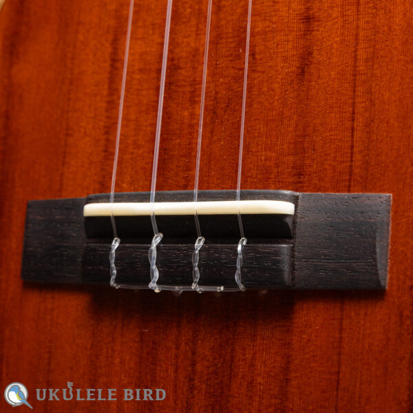 本楽器はクラフトムジカオリジナルシェイプのテナーで、トップにアレルセ材を使用しているのが大きな特徴です。アレルセはチリ産の杉で、ブラジリアンローズウッドなどと同じくワシントン条約付属書1類掲載の希少材です。目が詰まって非常に美しく、繊細かつサスティーン豊かな音色を奏でます。