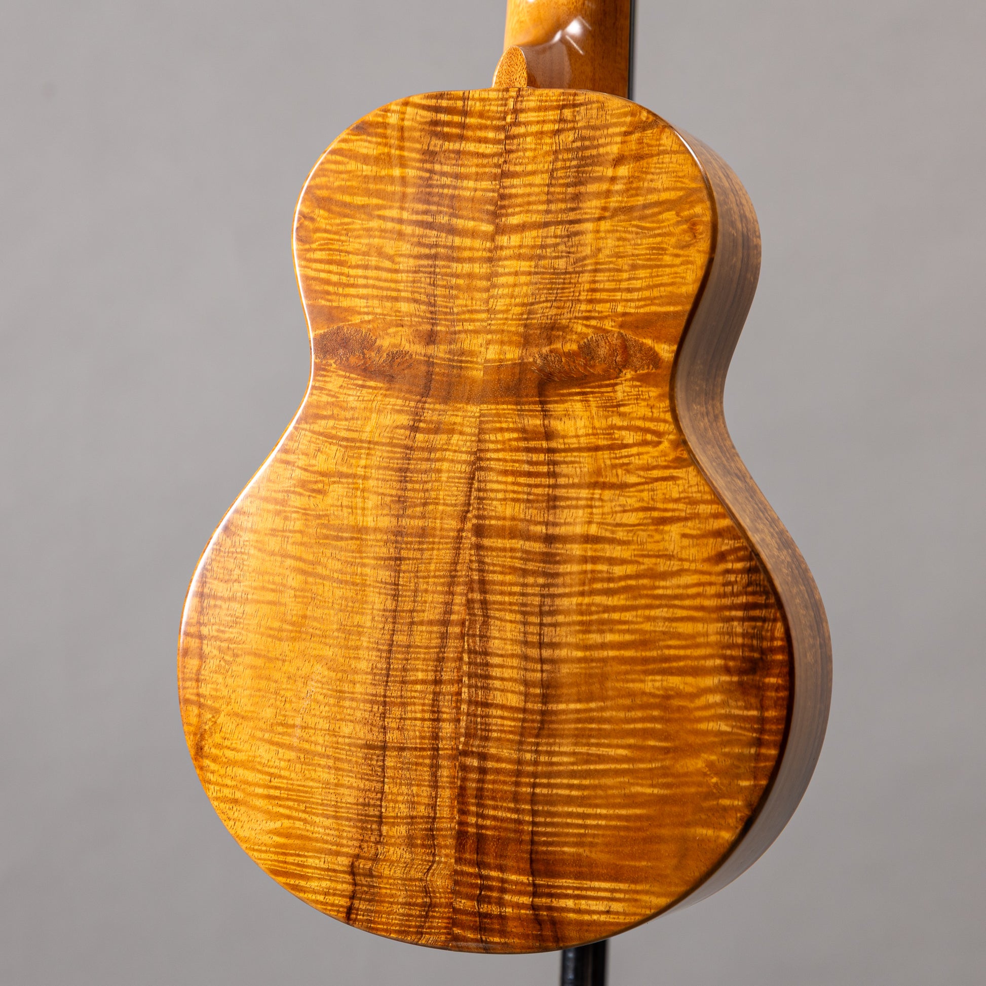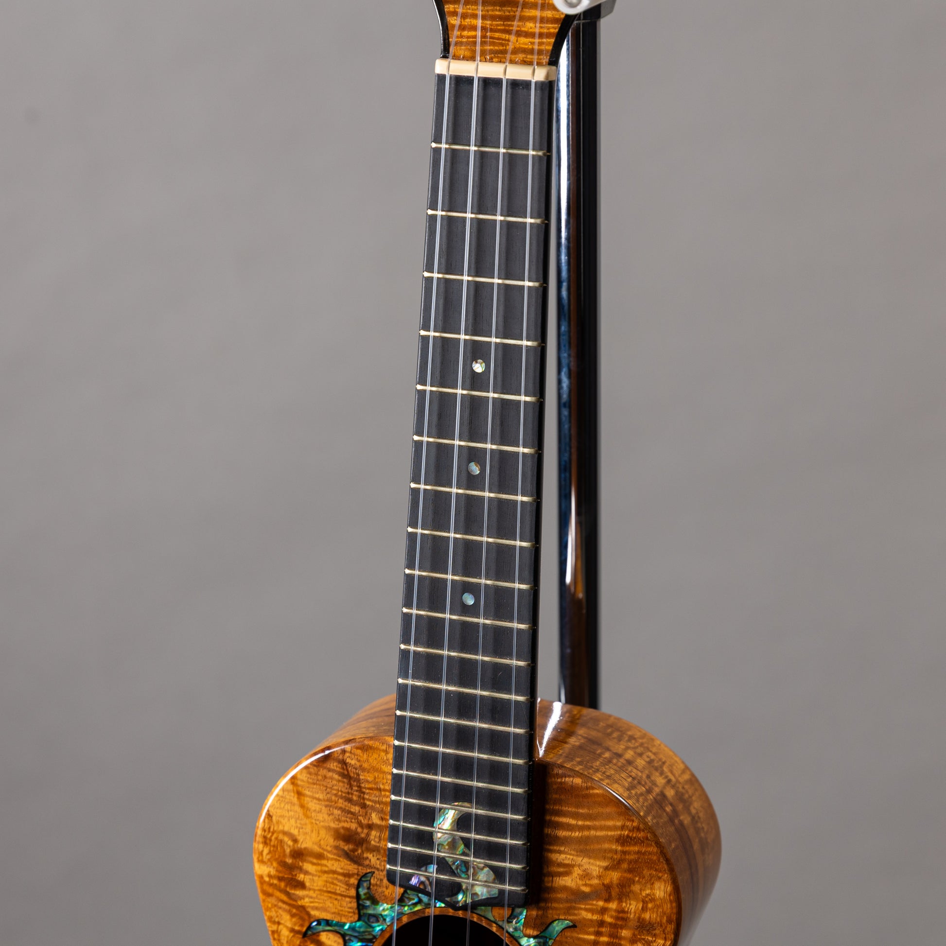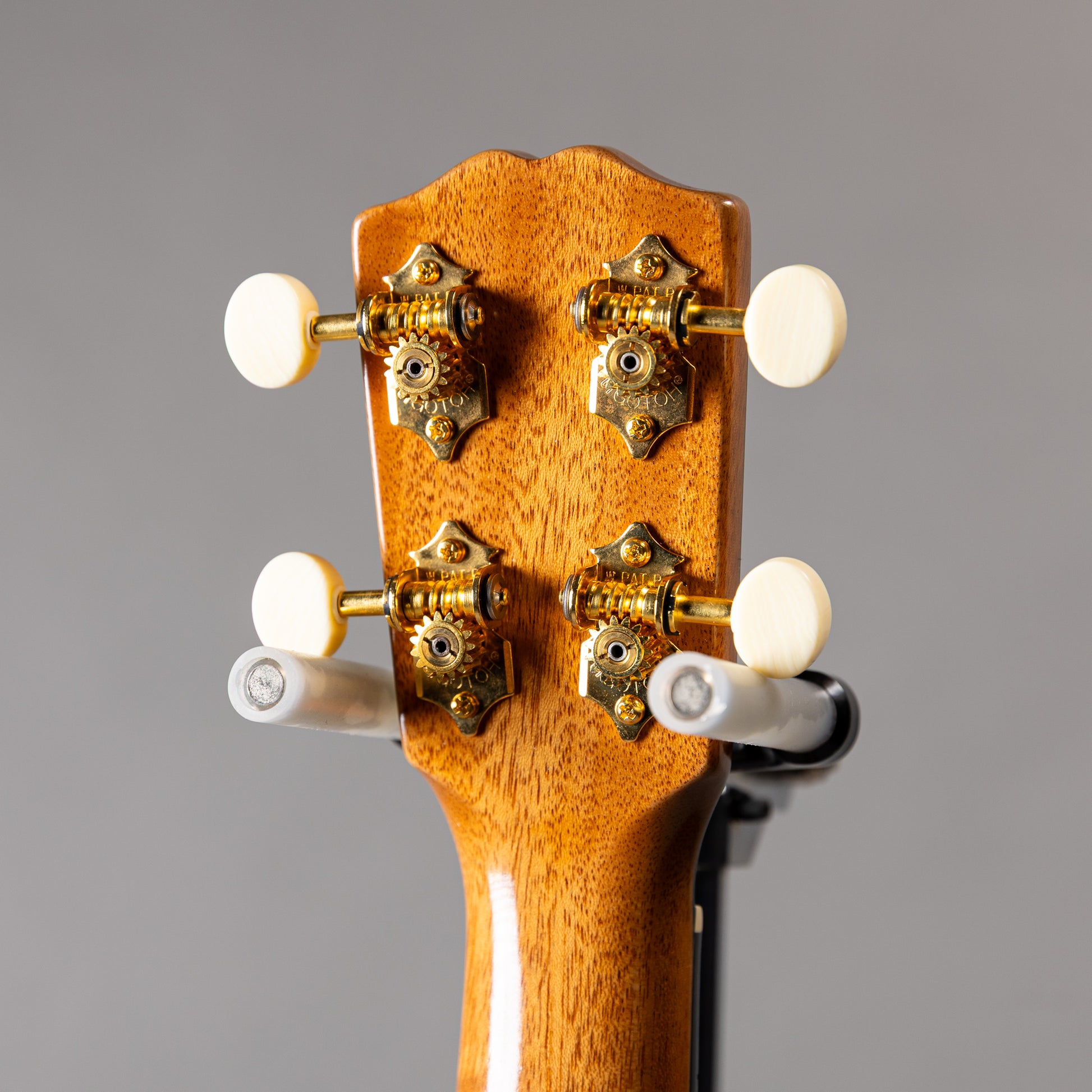 本器 C1 Sun はG Stringを代表するコンサートモデルで、杢目の美しいオールハワイアンコアボディに、ヘッドのSun(太陽)インレイが印象的な一本です。