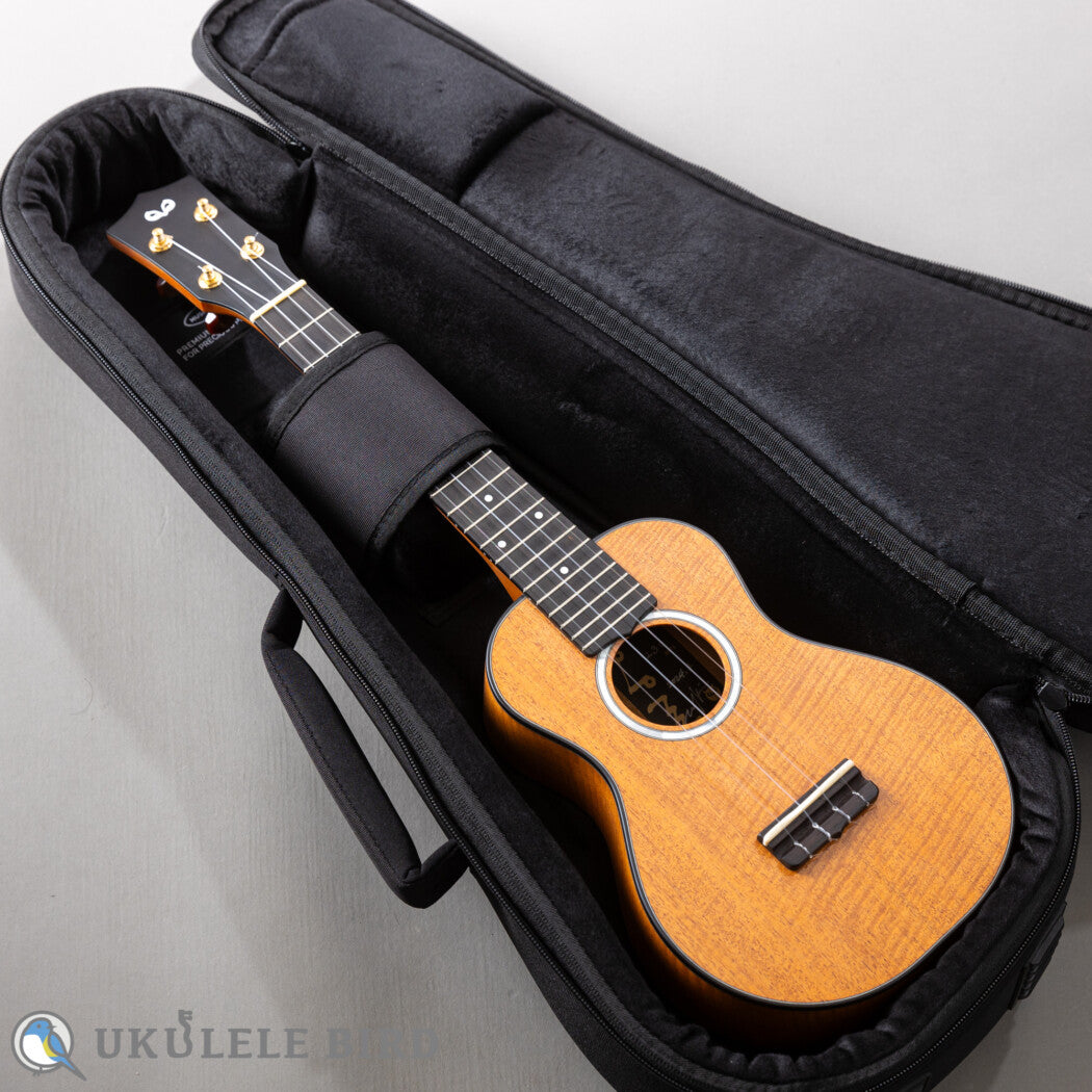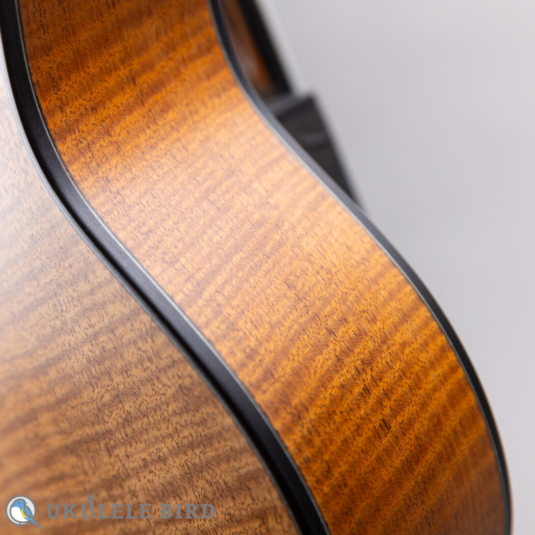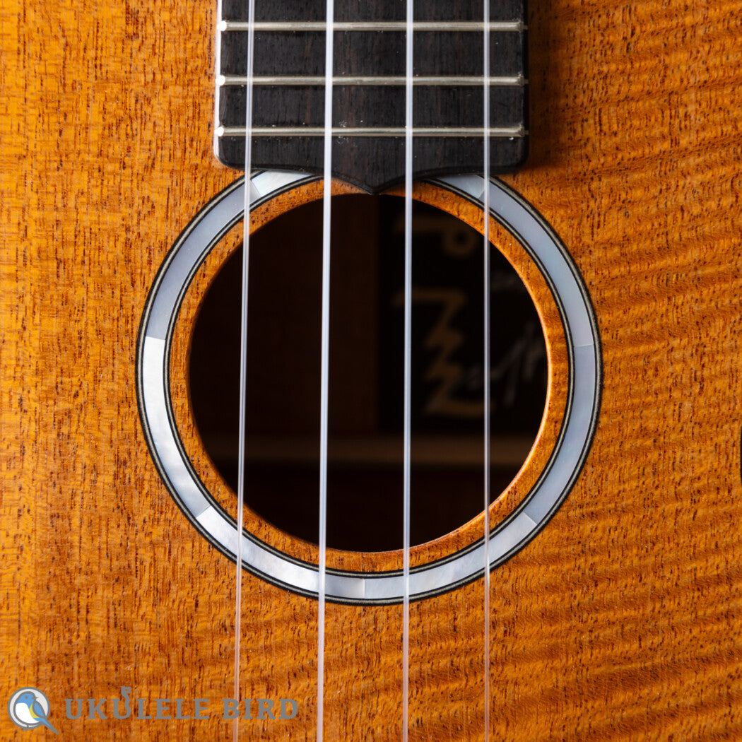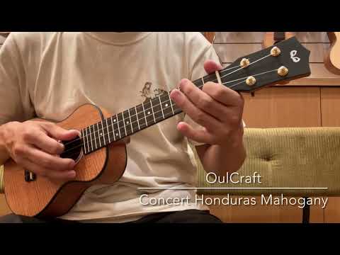 ボディに見事なカーリーの入ったワンピースのホンジュラスマホガニーを使用した、OulCraft(オウルクラフト)の特注コンサートモデル!