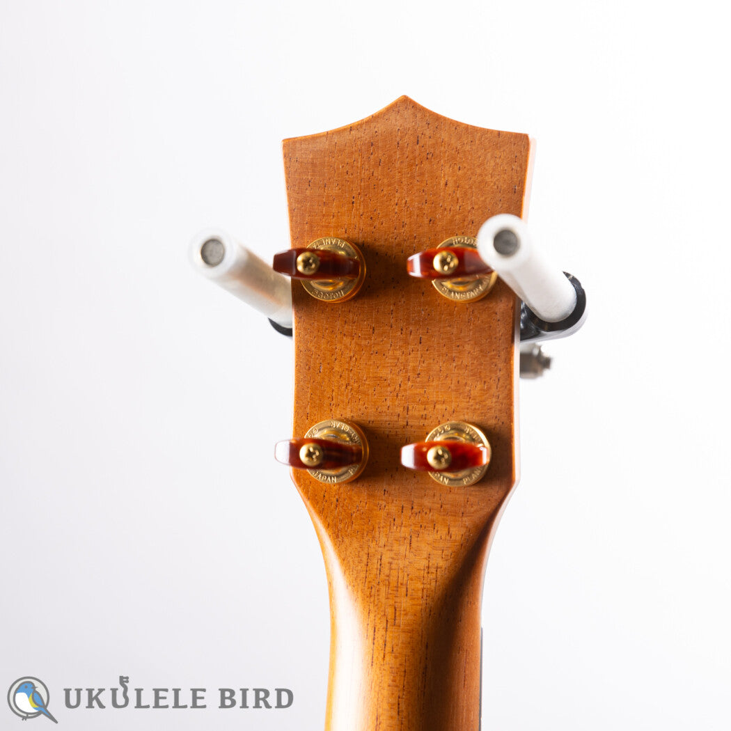 本楽器は当店がオーダーしたコンサートモデルで、ボディに見事なカーリーが入った希少なワンピースのホンジュラスマホガニーを使用したコンサートウクレレです。
