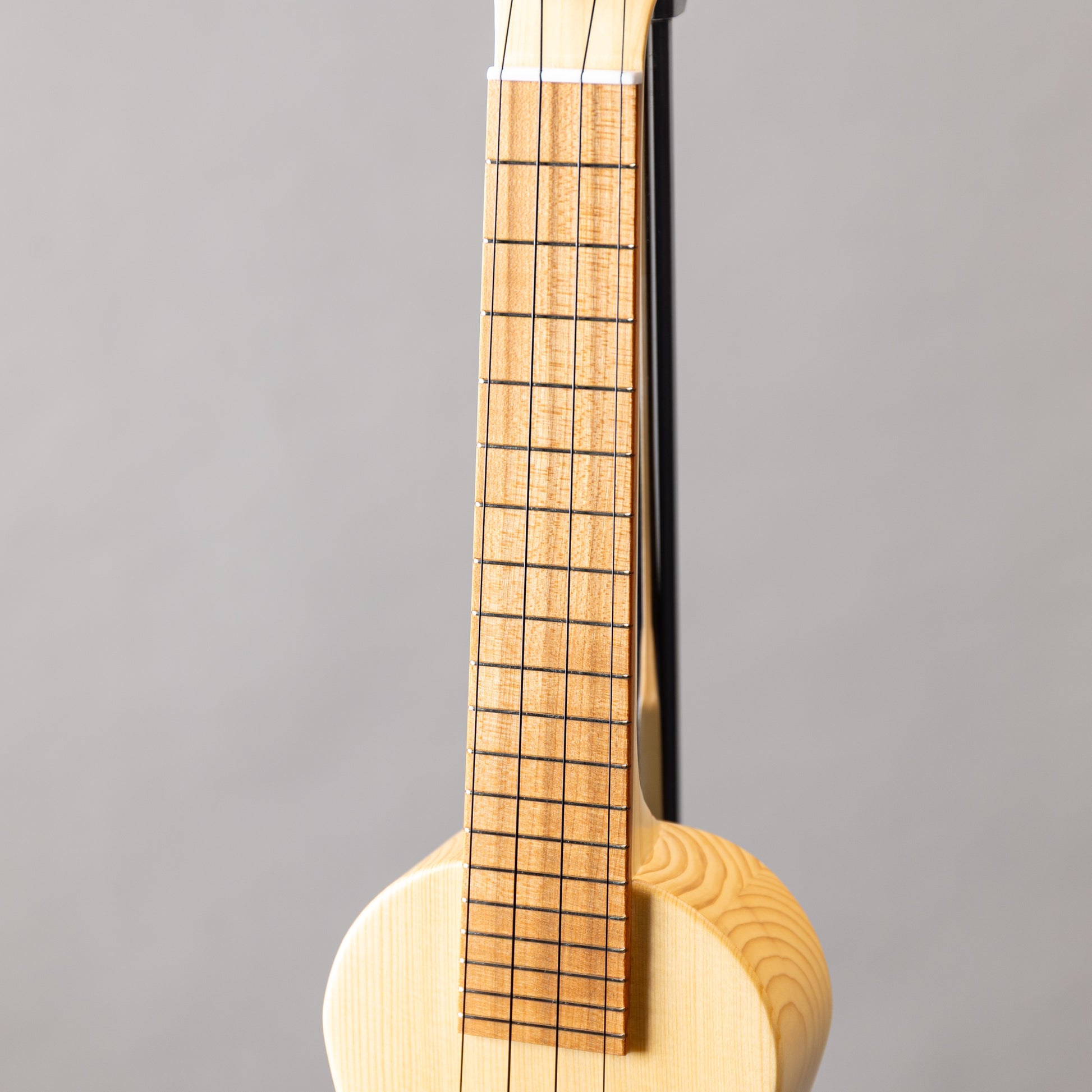 天然のエゾマツは現在では非常に希少となっているが、わずかに採取される貴重な材を仕入れ、ウクレレへと生まれ変わらせている。