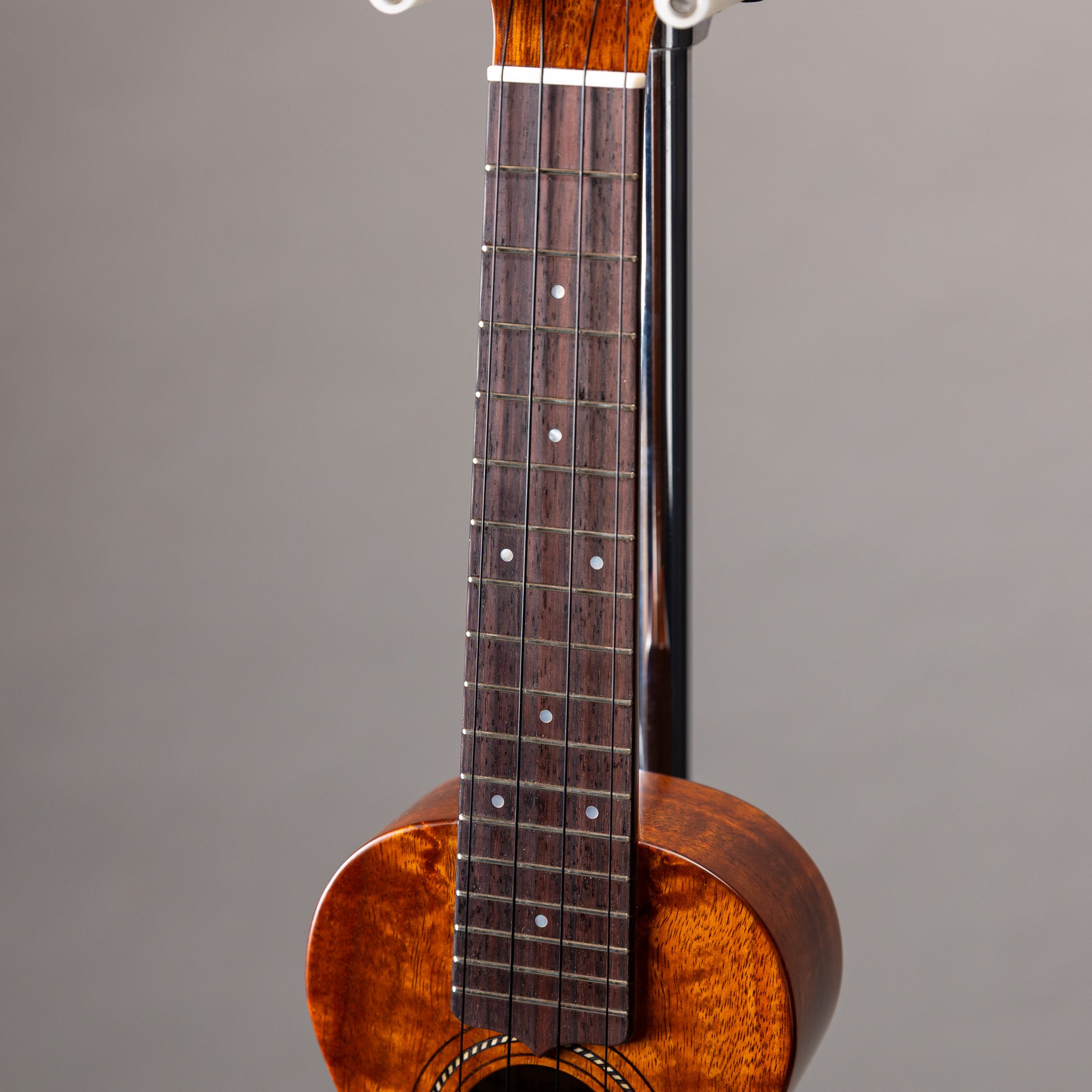 本楽器もそのオーダーのうちの一台で、12フレットジョイントの346mmスケールのヴィンテージタイプのソプラノウクレレです。